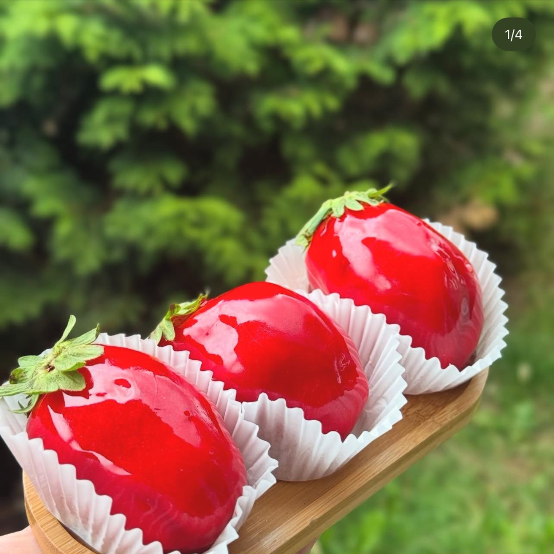 An explosion of flavor and texture! Fresh strawberries dipped in creamy white brigadeiro, covered in a crunchy caramel topping—the classic strawberry of love reinvented with a gourmet twist. Perfect for those who love contrasts: the tartness of the fruit, the smooth sweetness of the brigadeiro, and the crunch of caramel in every bite!