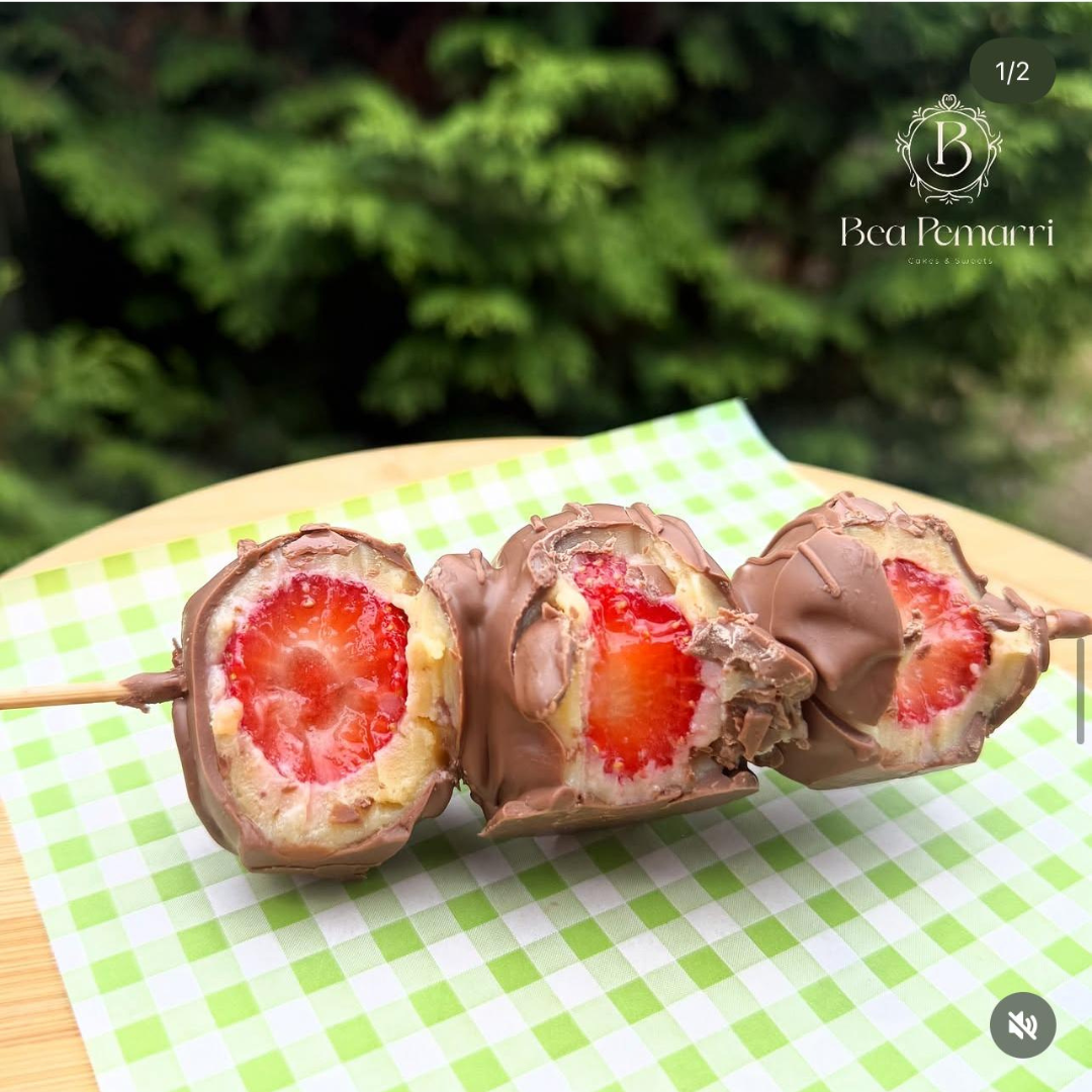 Fresh grapes or strawberries wrapped in creamy white brigadeiro, covered in Callebaut Belgian milk chocolate. Served on a skewer, they're perfect for gifting, table decorations, or simply enjoying!